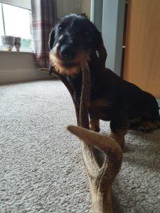 My new German puppy “Remy” arrived safe and well on Sunday past. He bound from a large van with his tail wagging and looking no worse for wear after his three-day journey. My daughter had blown up balloons and bought “Doggy” cupcakes to welcome him to Ireland and the pair spent the afternoon becoming acquainted. He is a fine example of a Wire-Haired Dachshund and arrived from breeder Doreen Klaus (Vom Alten Friedrich) in absolutely spectacular condition. He has only been here 3 days as I write, however it seems a lot longer and as he settles in very well, I can’t help but feel we will have a lot of fun together!