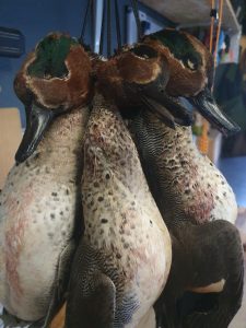 I have always loved the pursuit of Teal, probably because it was the first type of shooting I was introduced to. My home village had very flat ground and was over a century ago, criss crossed with lots of hand dug drainage ditches to prevent the land from flooding. These ditches filled with aquatic plants and insects with in turn provide great habitat and feeding for wintering Teal and also Mallard. A Teal hunter in this area has to be quick off the draw, they are a lightning-fast small bird that flush on the crunch of frosty grass or a heavy boot, so speed is required. One may flush a dozen or more and they will fly up, go round and drop back down a few hundred yards ahead leaving you in a false sense of security that you can simply walk onwards, flush them again and get another shot only to reach where you marked them down to find nothing! Many times they will fly ahead, drop down and swim backwards towards you so that in following them up you actually pass them. I have, over the years worked out some strategies to outwit them which sometimes work and often don’t but the thrill is in the chase. I was amazed to read recently that Teal and Mallard fly at the same speed, but Teal appear faster due to their smaller size. Fly tiers are always glad of Teal wings for tying flies and I collect the livers and gizzards for the dogs and ferrets who delight in them – I had a Teckel some years who used to eat duck feet & heads by the bucket load! He had such a thing for them that he would stand at the block waiting while I dressed the birds and clipped off the feet and heads each time and eat both in seconds and wait patiently for the next. I often use a breasted Teal for retrieval training with the Teckels as they are small and easy to carry, an elastic band round the middle with the wings covering the breasted area is great for training and can be stored in the freezer for use again.