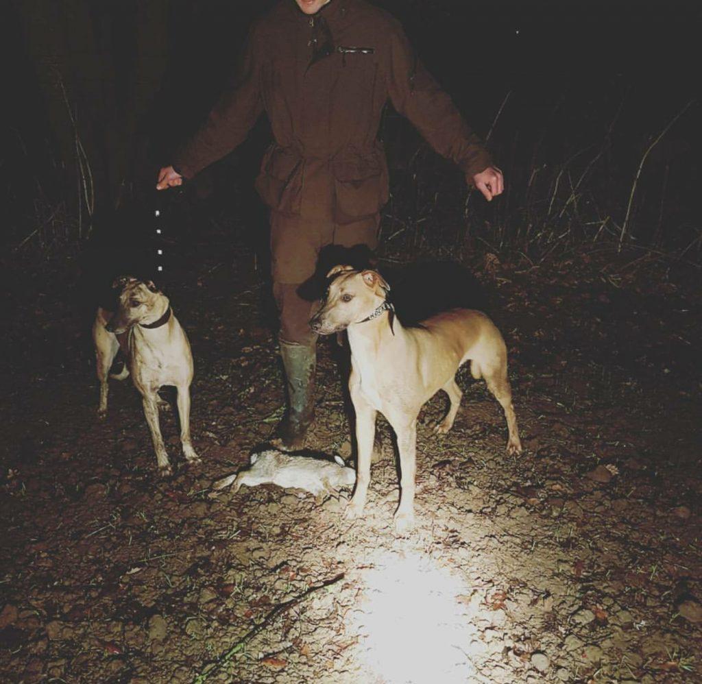 The first few fields on the low ground weren’t up to much, we had a slip here and there and although it was nothing exciting it was still good to be out. My lamping route here climbs uphill, across a sort of ridge of fields and back down again. It isn’t a massive area but it has given me plenty of sport over the years I have lived here. We reached the top and had 4 or so rabbits and made our way across the ridge where it seemed all the rabbits where tonight. One, two, three and then into another field, another two and then three before we got back to the top of the hill, that made a good twelve and then we were in for the run of the night. As we faced downhill we had a fence to cross, the field is very big and has very tight grass. Sitting right out in the middle was a rabbit. The old bitch jumped over, went down the light and the rabbit headed left, almost further than I could see. As I looked on it cut back and started coming towards us until it was right at the fence and ditch we were standing at. Up and down it went, back out into the field and then straight towards the fence when it realised it was about to hit it, and it jumped straight into the air at our feet and the old bitch jumped and snapped it right up! “That’s a girl” I said, it was a great catch and not one I see too often that really made the night for my friend. We made our way back down and had no more exciting runs but she lifted a few more making our bag 16 for the night. It had been enjoyable, and although I was a bit disheartened to see the numbers down there is simply nothing we can do about it. If I had hunted the ground hard over the last two seasons then perhaps I could take blame myself, but I haven’t and perhaps that is just the way things are in the countryside now. Farming practices and ever expanding towns and cities are encroaching at a fast rate and we don’t know the knock effect things like this have even on more remote areas, who knows.
