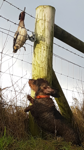 Frosty mornings seem to be less frequent these days than they used to be. Perhaps it is through rose tinted glasses that I look back and seem to recall so many Saturday mornings over a winter when a ferreter could hardly get a spade into the ground to recover a determined ferret. I feel over the last decade there has been a definite shift in the weather with wetter summers and warmer winters and those mornings when the ground was like bell iron are few and far between. Luckily over the winter of 2017 – 2018 we had a few of those nostalgic mornings and I took full advantage and slipped out for a spot of shooting. Not being the conventional type I didn’t load up a spaniel or pointer and nor did I put a 12 or even 20 bore into my gun slip. A Teckel and a 410 are my shooting partners these days, and it has made for some exciting and interesting sport as I would find out one frosty morning back in December. Oscar, a little Teckel born and bred in County Cork from a bitch called Pepper and sired by a Teckel called Dandy, Oscar is just about two years old and he and I are great friends and have been since I collected him back in September 2016 and in that short space of time we have had a lot of adventures. Oscar slotted in well from the beginning, while not a boisterous or overly confident puppy he was far from shy and showed his intelligence and keenness from a very early age. His first catch at only 16 weeks old was a moth and he proudly carried it around the garden for over an hour and continually dropped it picked it up again every time the lurchers got too close. A sensible pup, he took everything in his stride and was firm friends with the ferrets within a few days, stock breaking was a breeze however, edging on the side of caution I attached a long line to him in a field full of sheep and lambs one spring morning where the farmer lets me train the dogs and he paid no interest in them at all and never has since. I like any dog I own to do a little more than they are supposed to. Why should a Lurcher just go lamping or ferreting? I have taken all my Lurchers beating and shooting, but my bitch Fudge always had a knack for it since a pup and Paddy Boyd and the other lads always like to see her coming on the shoot days. She doesn’t really hunt the cover but will retrieve pheasants and ducks along with anything else except Magpies, they have a certain smell that puts her off. Shooting with her started quite by accident as one year the requirement in the syndicate was having a dog, I assumed a traditional Gun Dog but nobody specified exactly which type so I took her with me and have since. When someone folded a pheasant 15 minutes into the morning and she out run the Spaniels, cleared a small fence and retrieved it back to me I slipped into my bag, patted her head and acted like it was a normal thing, but of course I was beaming inside!
