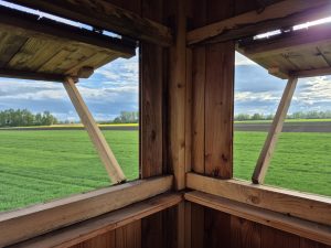 Within a couple of hours, “Patrick” was leading me to a High Stand on his lease. A beautiful area with acres of Rapeseed and Plough which was dotted with High Stands on the perimeter. Julia had been spotting Roe on the drive in, most of which took me a minute to see. Every now and again she would say “look there to the left” and only after some time would I notice a Roe or a pair of Roe along a hedge line or sitting down. I only wish we had Roe at home; they are an amazing Deer and a lot easier to handle than the almost cattle sized Reds at home – Often requiring vehicles and towing equipment to move them.