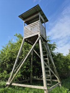Patrick and Julia wished me “Waidmannsheil” and I walked the last few hundred yards to the stand alone, and climbed the ladder to the evenings seat. Upon opening the door, I could hear a dull vibration and looked up to see not only a wasp’s nest on the ceiling but two large wood wasps circulating inside. Wood wasps are entirely harmless but rather intimidating and being stuck inside a four-foot square box which is 18ft in the air makes them even more intimidating! As I rushed and got the hatches open, they happily flew off and I just hoped the nest above my head remained quiet for the next three hours.